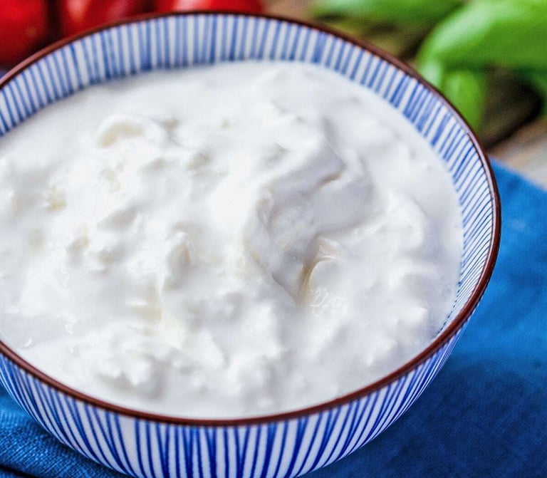 Goût: Délicat, doux et lacté, avec des notes savoureuses rappelant le lait frais et les ferments lactiques vivants.Si elle n'est pas consommée immédiatement, le goût peut devenir plus acide.